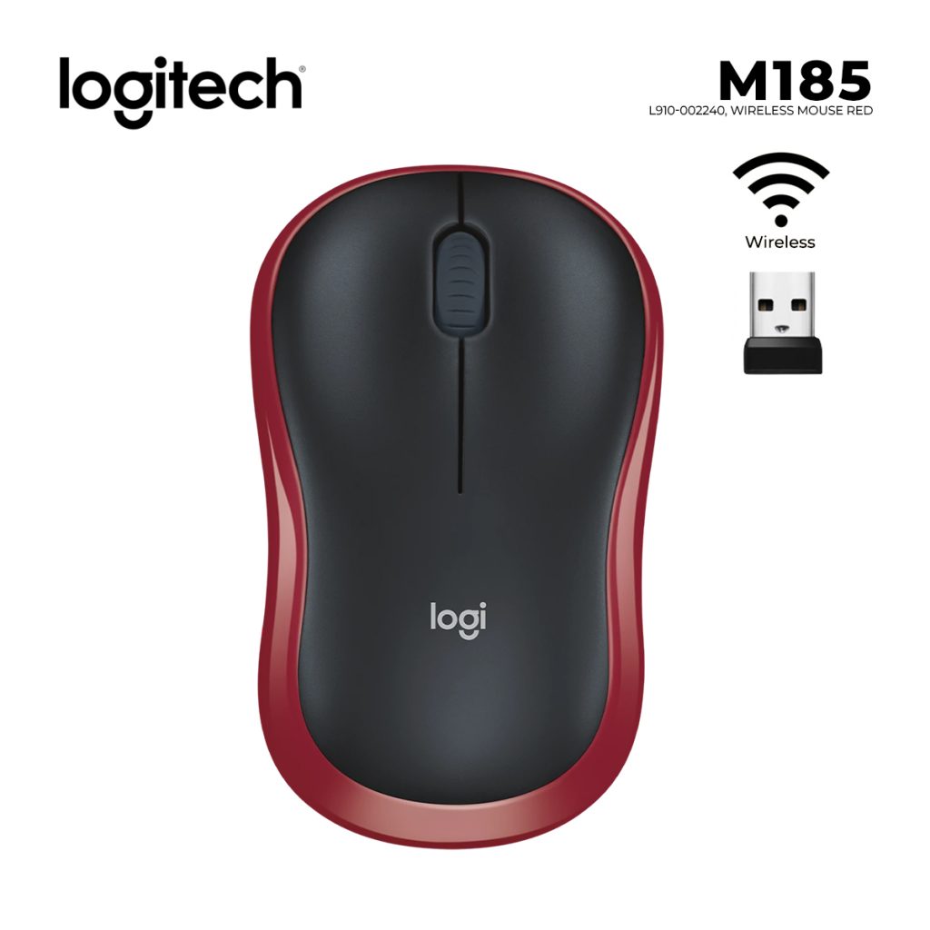 მაუსი უსადენო LOGITECH L910-002240 M185 Wireless Mouse – RED – EER2