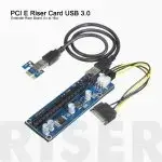 ეს არის PCI-E PCI Express Riser 1X-დან 16X-მდე გადამყვანი ბარათი USB 3.0 გაფართოებით, რომელიც განკუთვნილია გრაფიკული ბარათების დასაკავშირებლად დედაპლატასთან. იგი აღჭურვილია 6-პინიანი PCI-E დენის კონექტორით სტაბილური კვების უზრუნველსაყოფად და ამცირებს დედაპლატაზე დატვირთვას. ბარათს აქვს 3 ან 4 მყარი კონდენსატორი და ოქროსფერი კონტაქტები გამძლეობისთვის. მოყვება 60 სმ სიგრძის USB 3.0 კაბელი, რაც უზრუნველყოფს მოქნილობას გრაფიკული ბარათების განლაგებაში, განსაკუთრებით მაინინგ რიგებში.